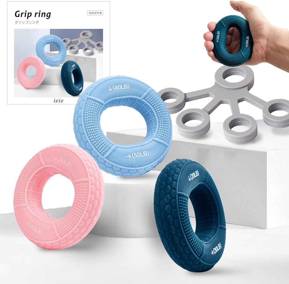 「強度の異なるグリップ3つ入り」一つのリングで、タテ・ヨコ異なる二つの強度のトレーニングが可能となっています。